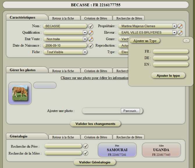 Project complet,gestion du cheptel pour un eleveur bovin. Mis à jour automatiquement par les données officiel d'organismes de contrôle